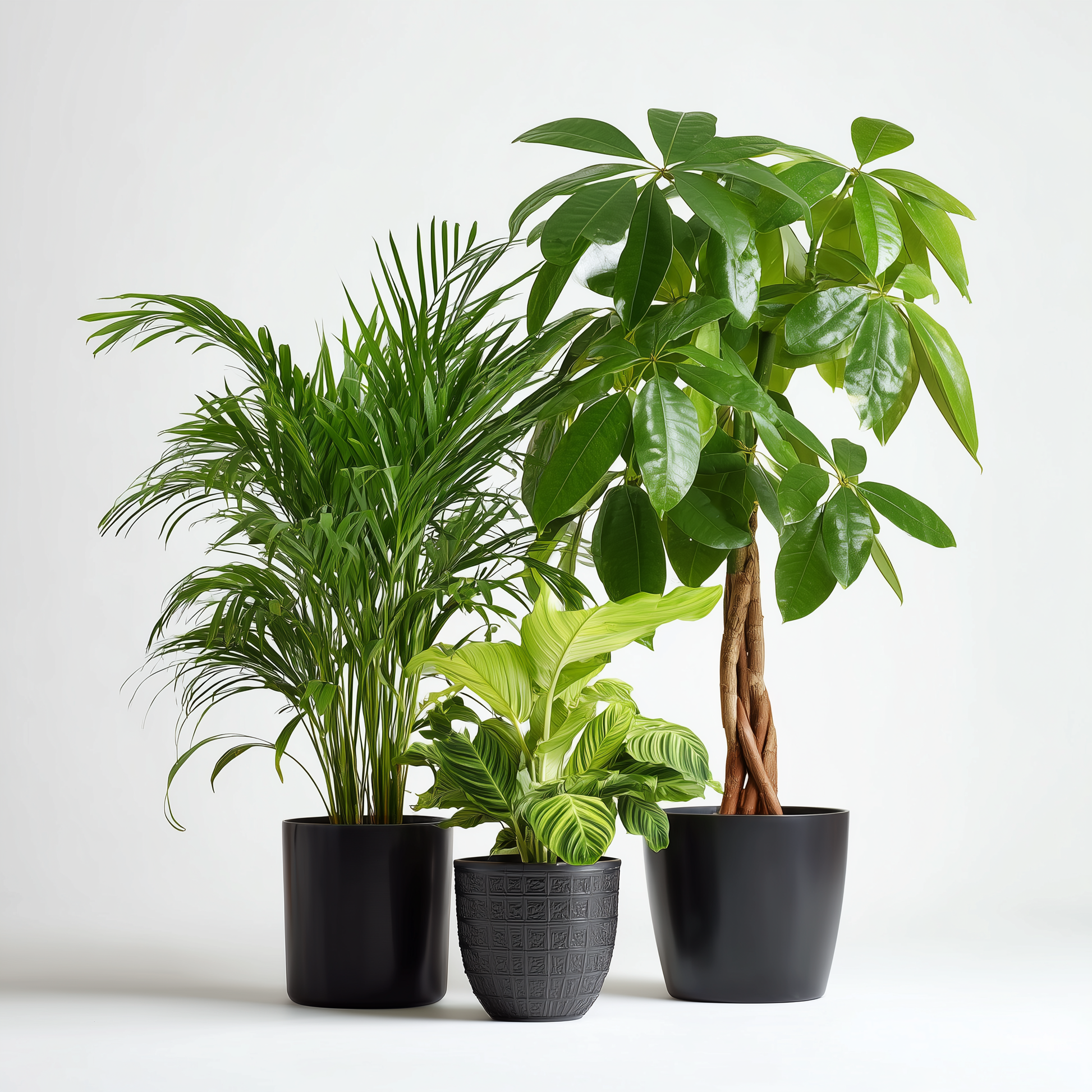 Mit dem Happy Cat Zimmerpflanzen Set holst du dir nicht nur stilvolle und pflegeleichte Pflanzen ins Zuhause, sondern schaffst gleichzeitig eine katzenfreundliche Umgebung. Dieses Set besteht aus drei wunderschönen Zimmerpflanzen – Glückskastanie (Pachira aquatica), Bergpalme (Chamaedorea elegans) und Calathea Orbifolia – die alle ungiftig für Katzen sind. So kannst du deine Wohnung begrünen, ohne dir Sorgen um deine Samtpfote machen zu müssen!